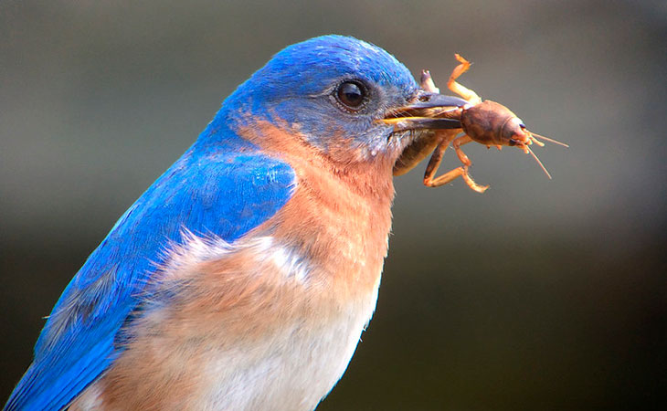 The nutrition of nestling bluebirds is high in protein, consisting of approximately 68% invertebrates and 32% berries. A high protein nutrition helps chicks abound every bit fast as possible and leave the nest presently.